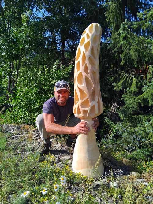 La neige ! voilà le matériau qui m’a donné envie de tailler, de gratter, d’enlever, d’ajouter, de tasser, de modeler, une matière parfaite pour s’initier à la sculpture. L’igloo géant à pelvoux a été un terrain jeu incroyable pour créer un univers de neige mais aussi de glace. Puis l’envie de découvrir d’autres matériaux m’a amené à travailler le bois, le métal, la paille, la toile de jute, l’écorce...Chaque matériau procure des sensations uniques et offre des possibilités différentes de réalisations.